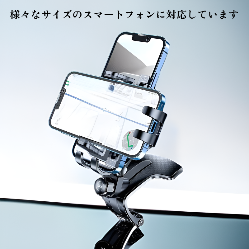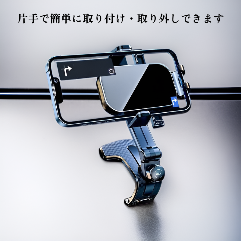 ● 360度回転可能なデザインで、運転中でもスマホの画面を自由に調整でき、ナビや通話がより快適に行えます。